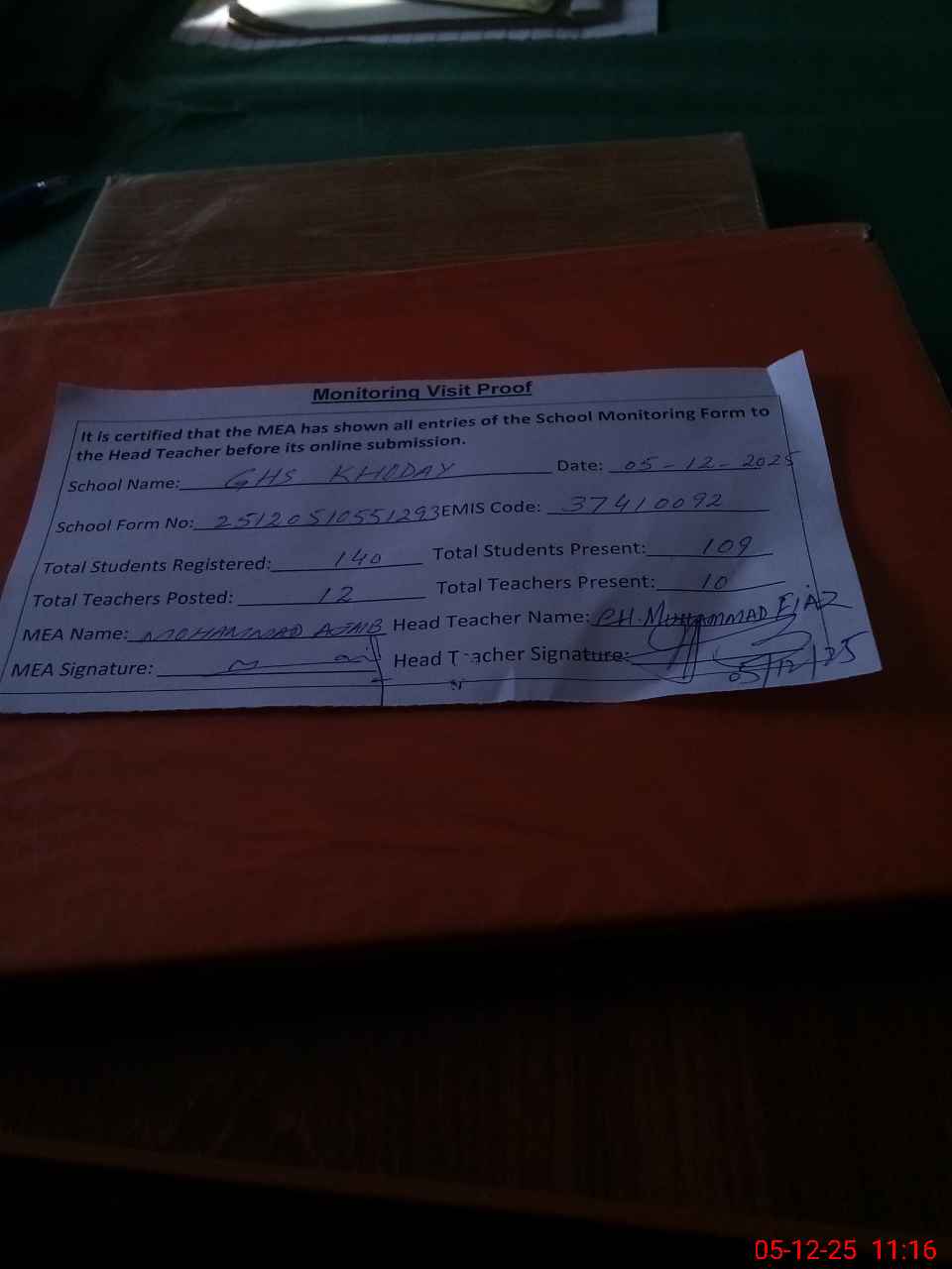| EMIS Code: 37410092 | Name of School: GHS KHODAY | |||
