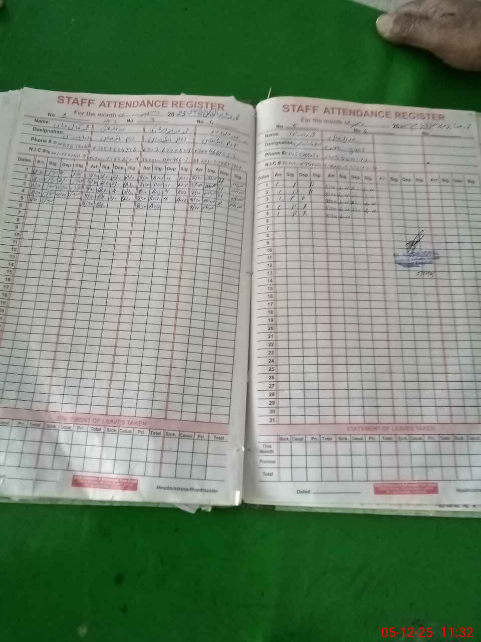 | CNIC | Full Name | Designation | R/C | Absence During Last Calender Month |