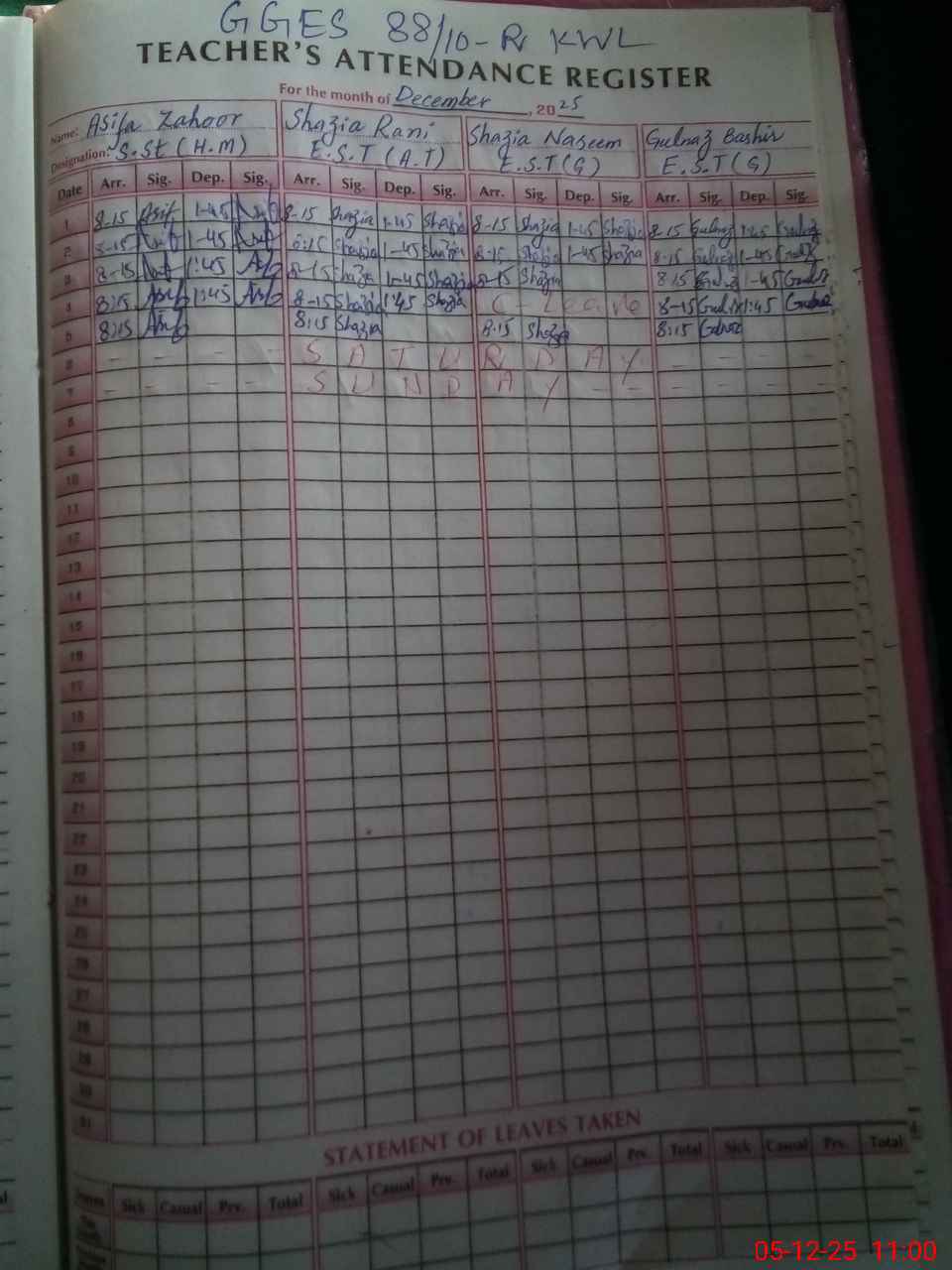 | No. of Students Present - Female | 0 | 0 | 0 | 0 | 0 | 0 | 0 | 0 | 0 | 0 | 11 | 0 | 11 | |||