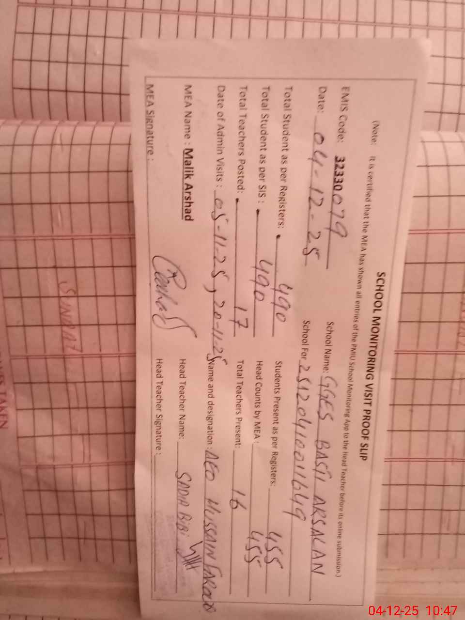 | EMIS Code: 32330079 | Name of School: GGES BASTI ARSALAN | |||