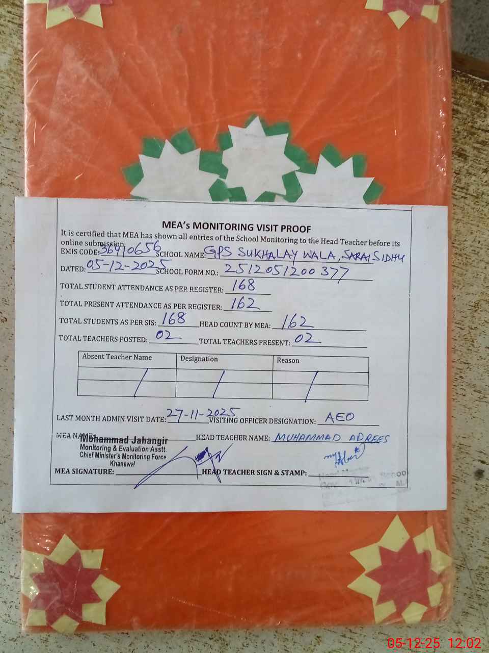 | EMIS Code: 36410656 | Name of School: GPS QITTA SUKHALAY WALA | |||
