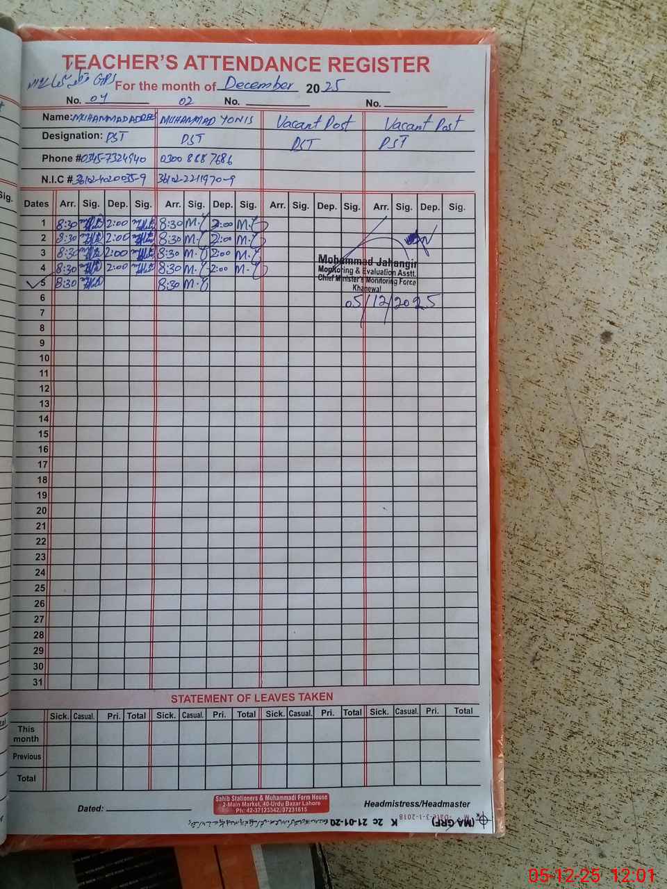 | Name: MId**** Designation: (School Headmaster's/Headmistress's) PST Phone/Cell Number: 03**** |