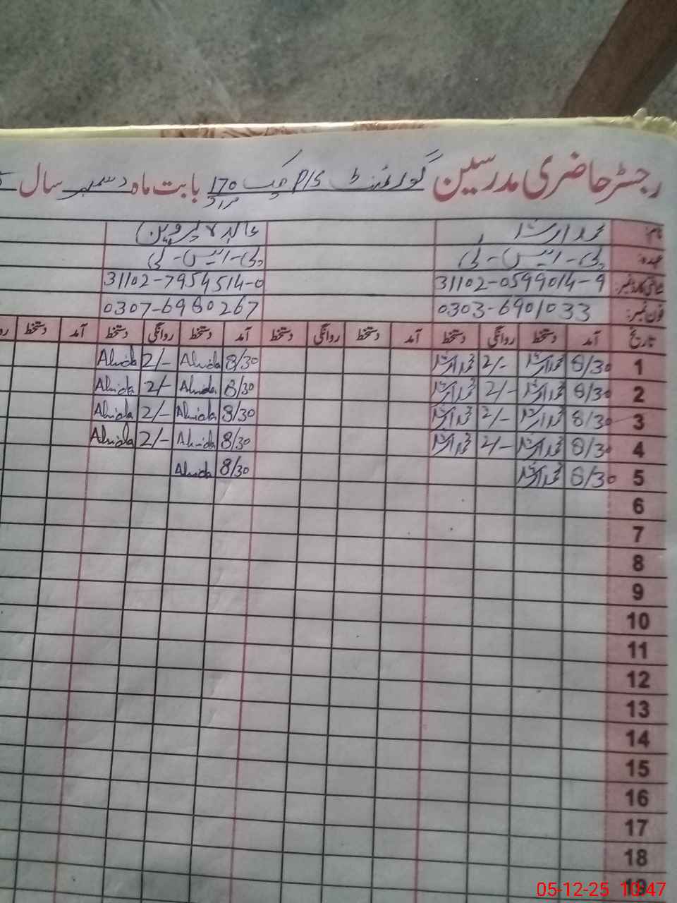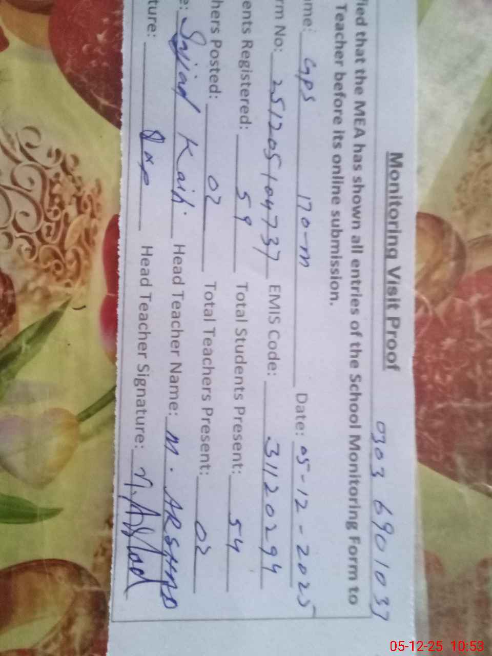 | Name: MU**** Ar**** Designation: (School Headmaster's/Headmistress's) PST Phone/Cell Number: 03**** |