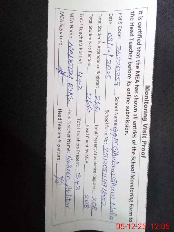 | EMIS Code: 35220357 | Name of School: GGPS GHULAM GHOS WALA (AIR LINE SOCITY) | |||