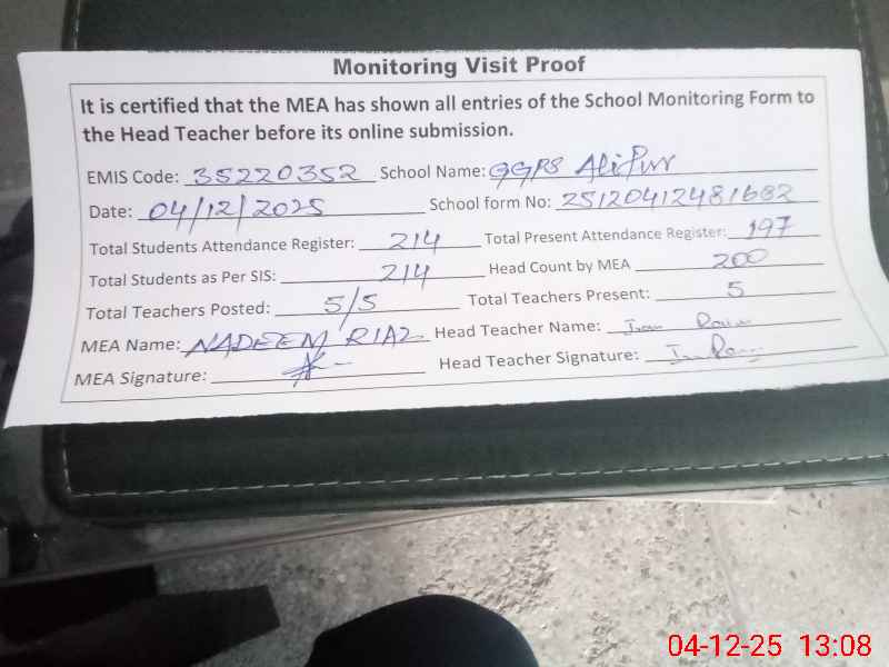 | EMIS Code: 35220352 | Name of School: GGPS ALI PUR TEH MODEL TOWN | |||