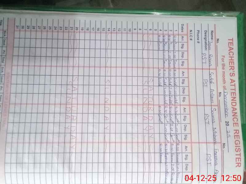 | Name: Ir**** Ra**** Designation: (School Headmaster's/Headmistress's) PST Phone/Cell Number: 03**** |
