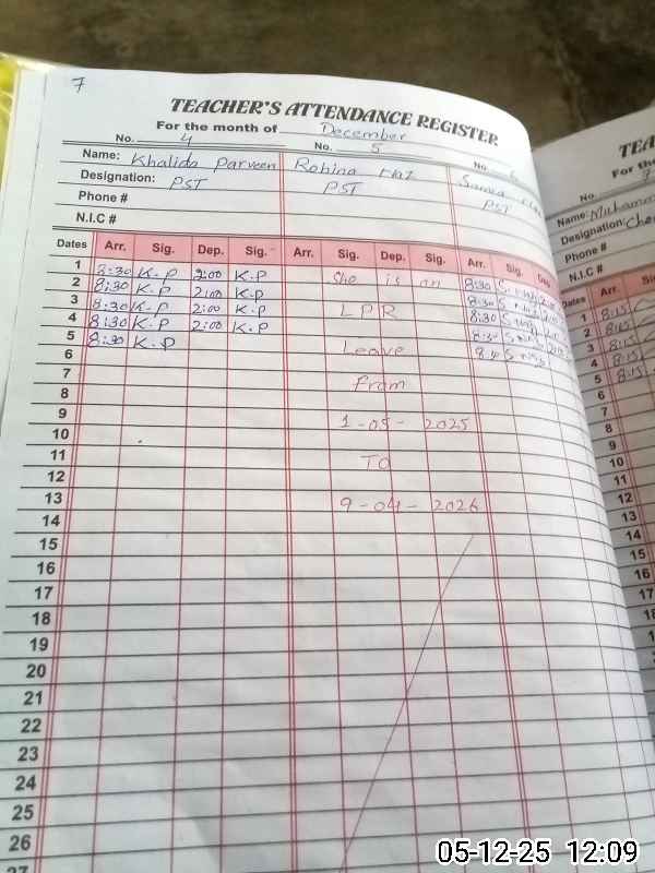 | 34**** | Ro**** Na**** | PST Arts | Regular | 0 | 0 | 0 | 0 | 0 | 0 | 0 | 0 | 0 | Absent (Un-Authorized) |