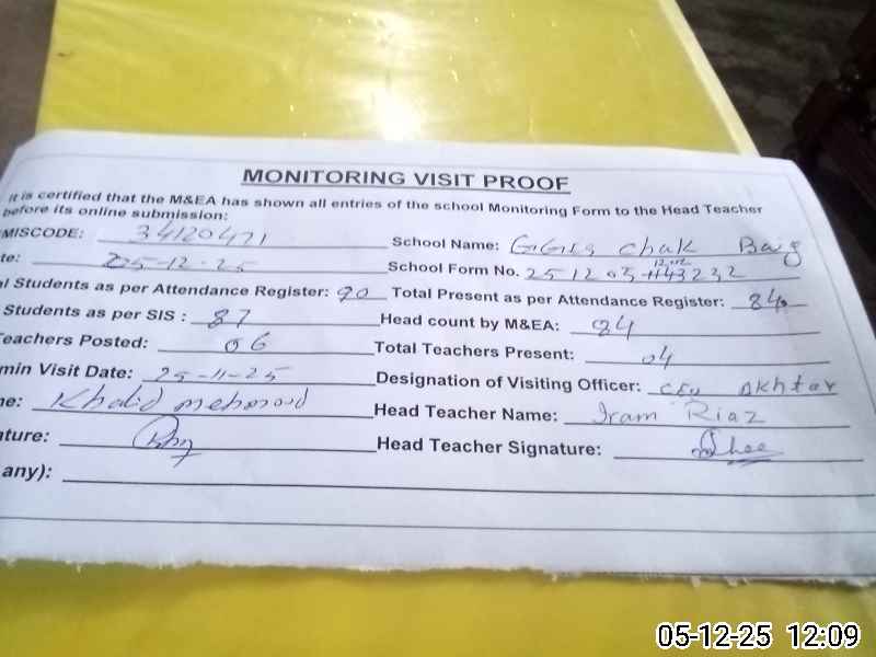 | EMIS Code: 34120471 | Name of School: GGES CHAK BAIG | |||