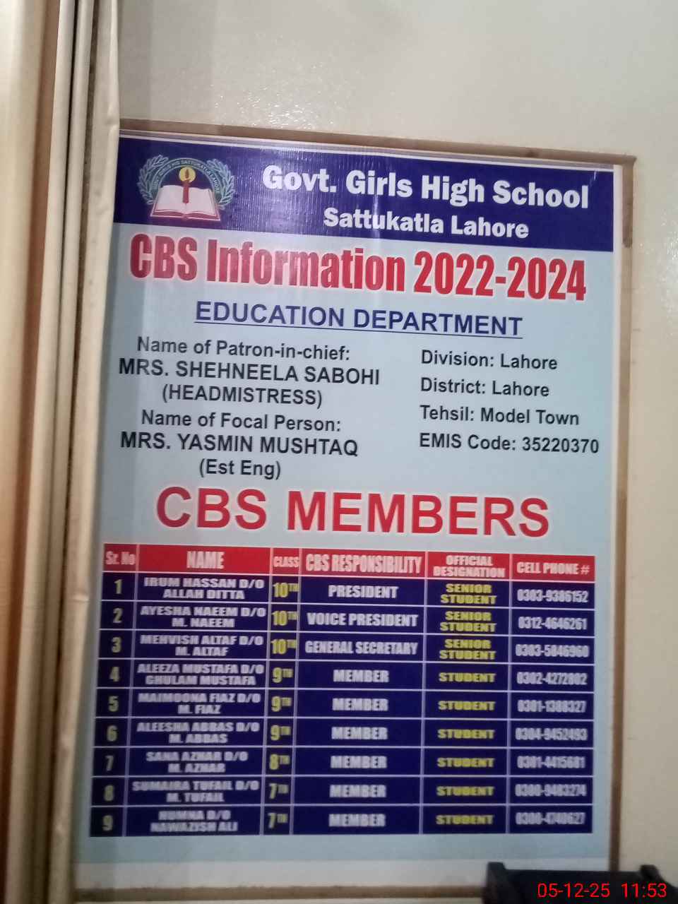 | Name: Sa**** Ma**** Designation: (School Headmaster's/Headmistress's) SST Phone/Cell Number: 03**** |