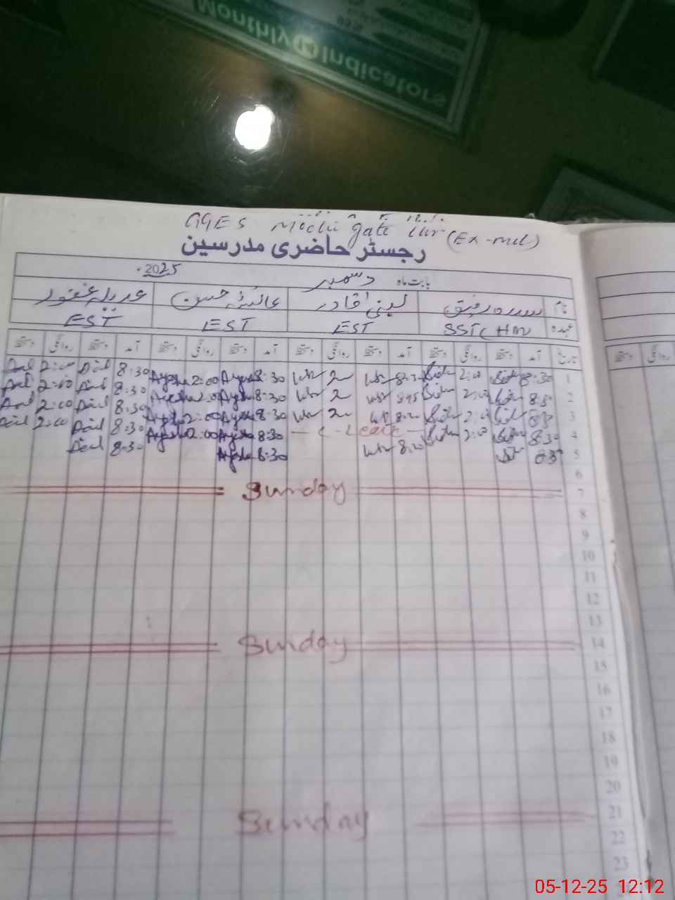 | Monitoring Date: 05-12-2025 | Start Time: 05-12-2025 11:18 AM | End Time: 05-12-2025 12:21 PM | Name of MEA: Mu**** Iq**** | |