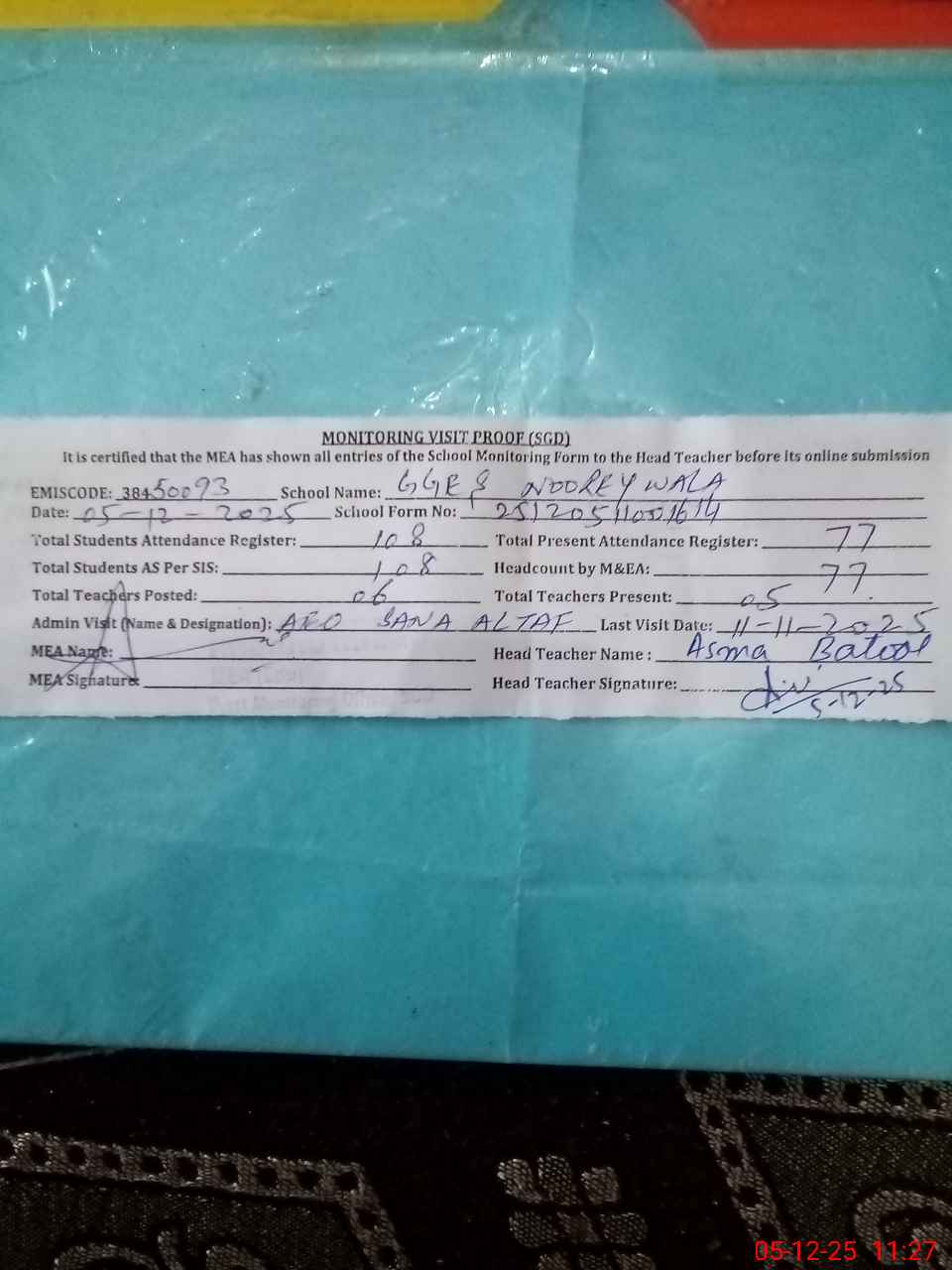 | EMIS Code: 38450093 | Name of School: GGES NOOREY WALA | |||