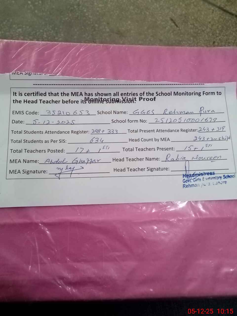 | EMIS Code: 35210653 | Name of School: GGES REHMAN PURA | |||