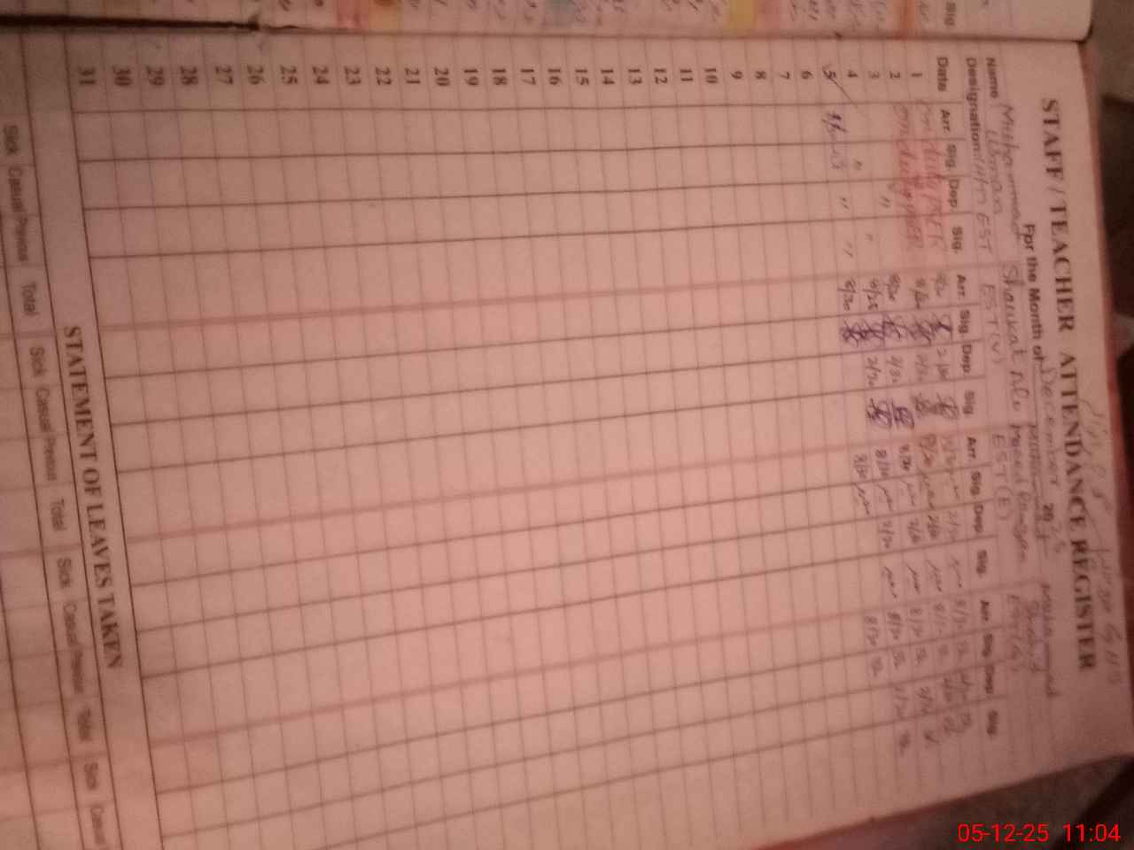 | 34**** | Ma**** Hu**** | Regular | 0 | 0 | 30 | 0 | 0 | 0 | 0 | 0 | 0 | Absent (Un-Authorized) | |