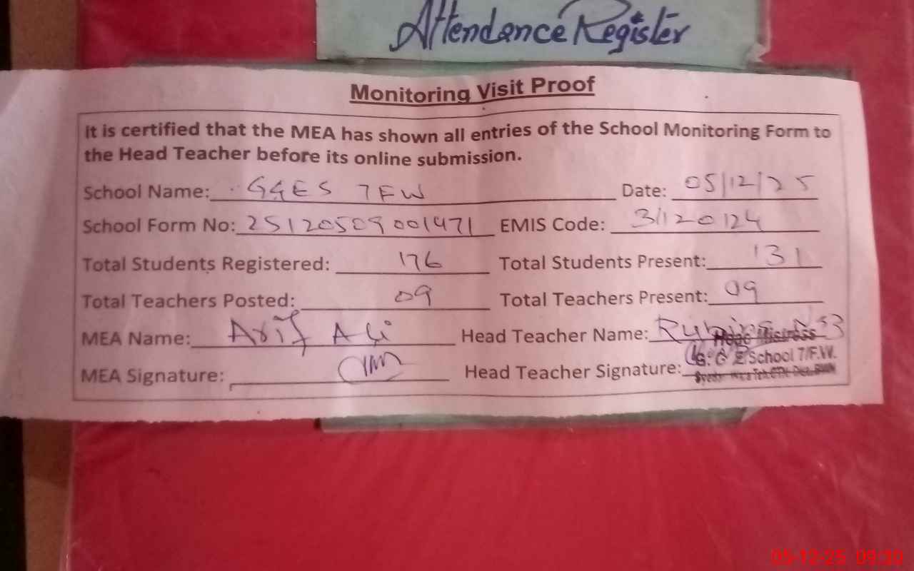 | Attendance Register | Head Teacher | MEA with School | Visit Proof |