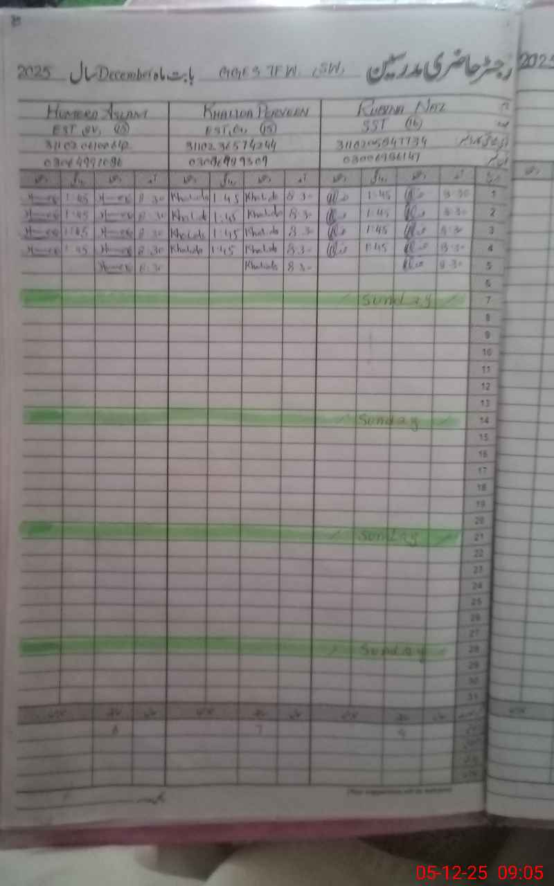 | CNIC | Full Name | Designation | R/C | Absence During Last Calender Month |