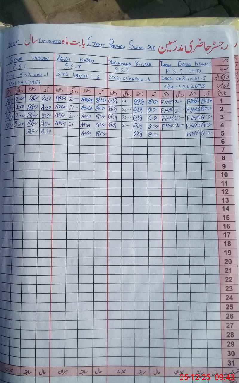 | Name: IM**** FA**** HA**** Designation: (School Headmaster's/Headmistress's) PST Phone/Cell Number: 03**** |