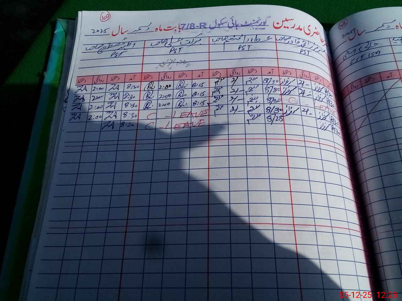 | CNIC | Full Name | Designation | R/C | Absence During Last Calender Month |