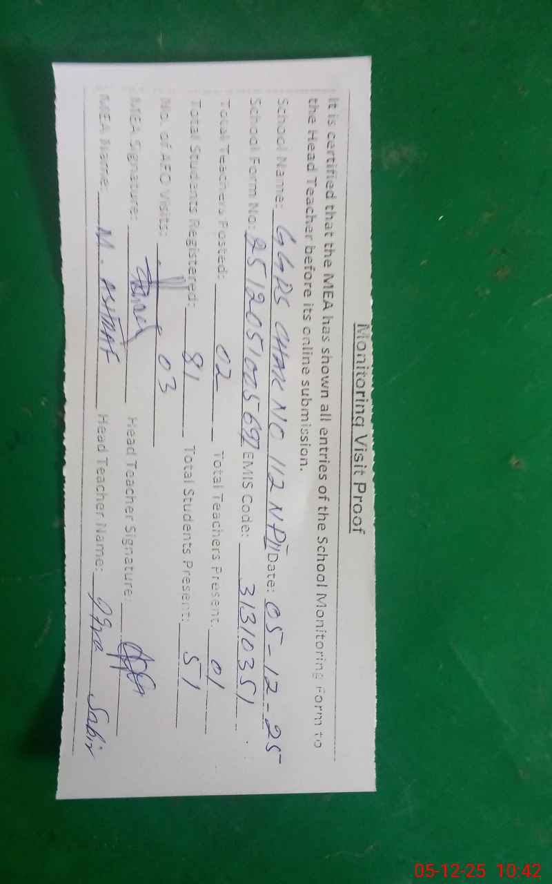 | EMIS Code: 31310351 | Name of School: GGPS CHAK NO. 112/NP | |||