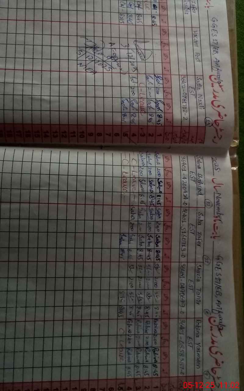 | CNIC | Full Name | Designation | R/C | Absence During Last Calender Month |