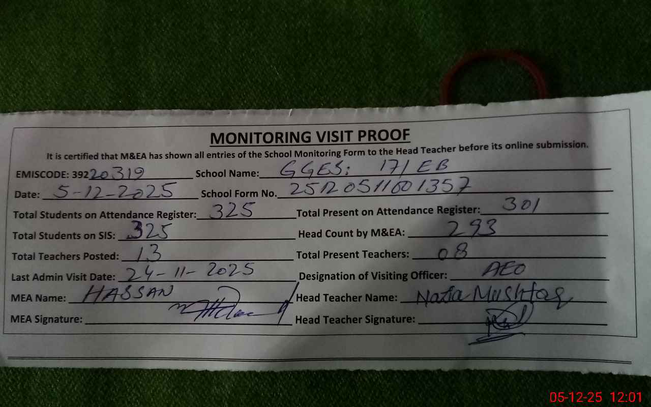 | EMIS Code: 39220319 | Name of School: GGES 17 EB | |||