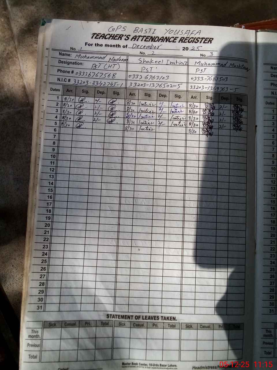 | Name: MU**** NA**** Designation: (School Headmaster's/Headmistress's) PST Phone/Cell Number: 03**** |