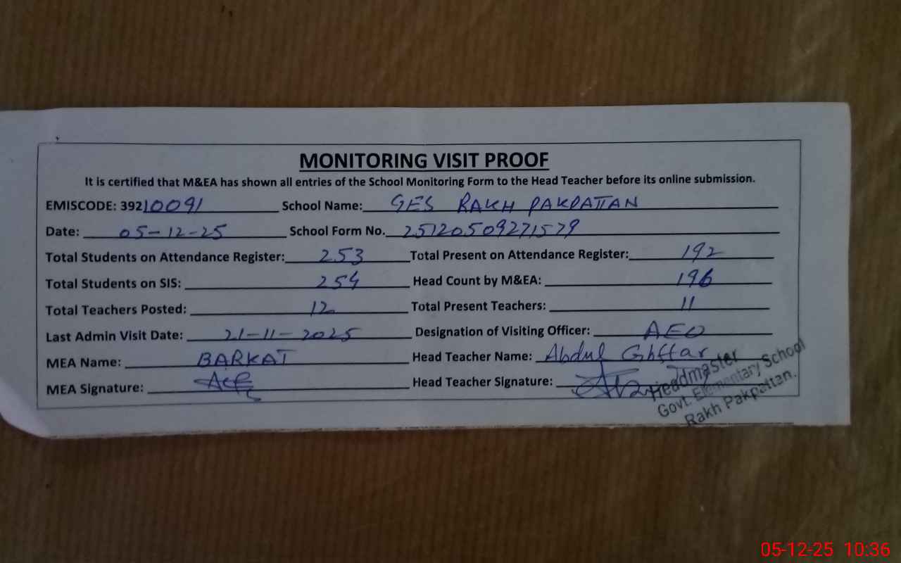 | EMIS Code: 39210091 | Name of School: GES RAKH PAKPATTAN | |||