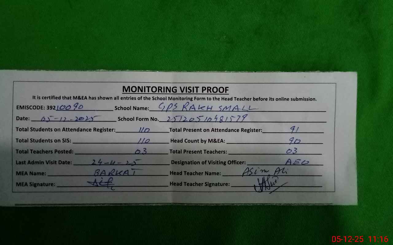 | EMIS Code: 39210090 | Name of School: GPS RAKH SMALL P/O 17/SP PAKPATTAN | |||