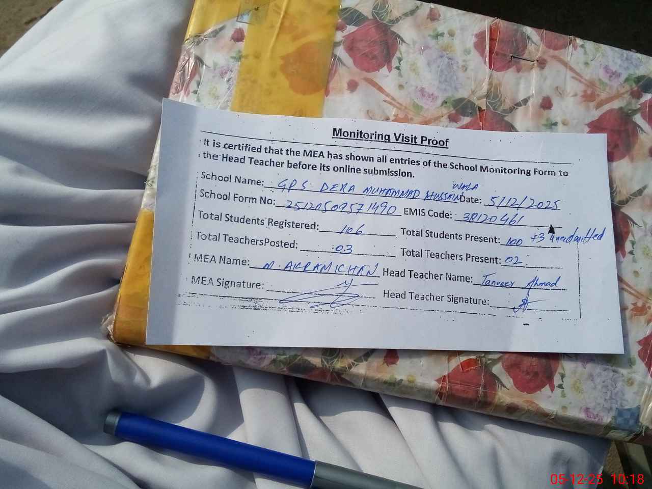 | EMIS Code: 38120461 | Name of School: GPS DERA MUHAMMAD HUSSAIN WALA | |||