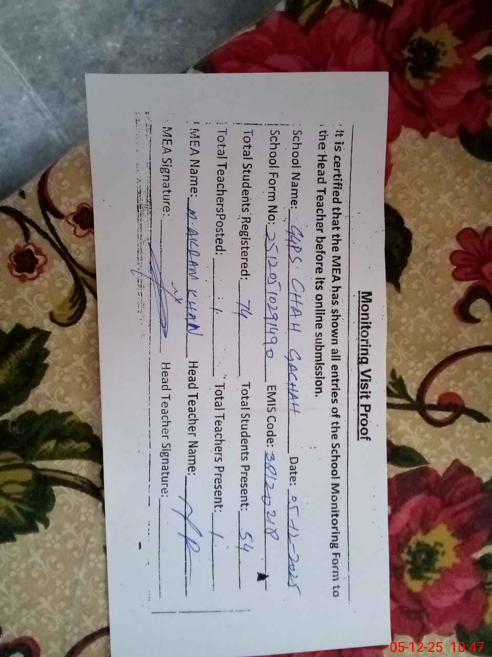 | EMIS Code: 38120218 | Name of School: GGPS CHAH GACHAH | |||