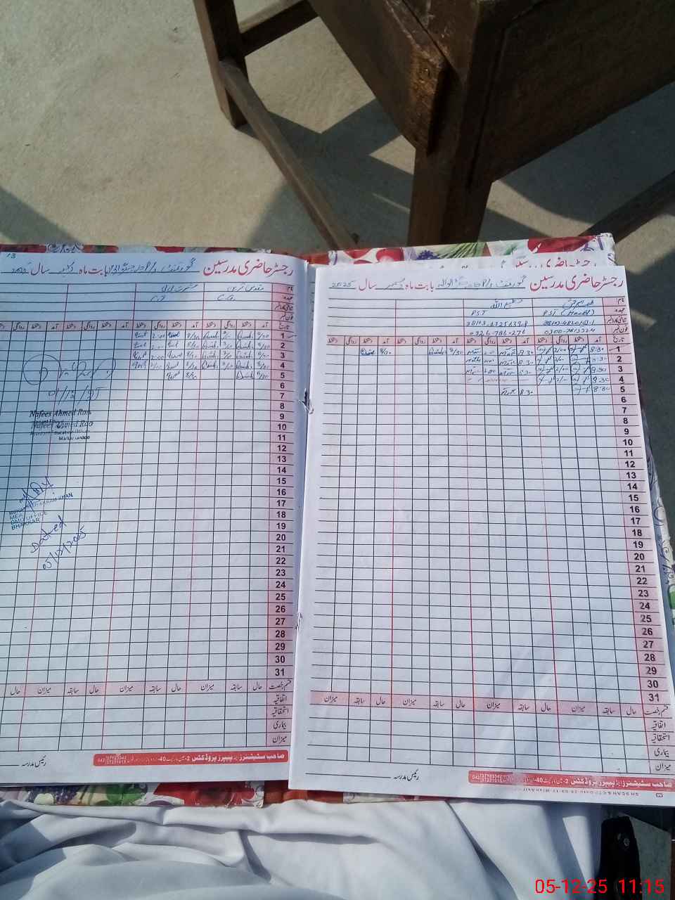 | Name: MU**** IR**** Designation: (School Headmaster's/Headmistress's) ESE Phone/Cell Number: 03**** |