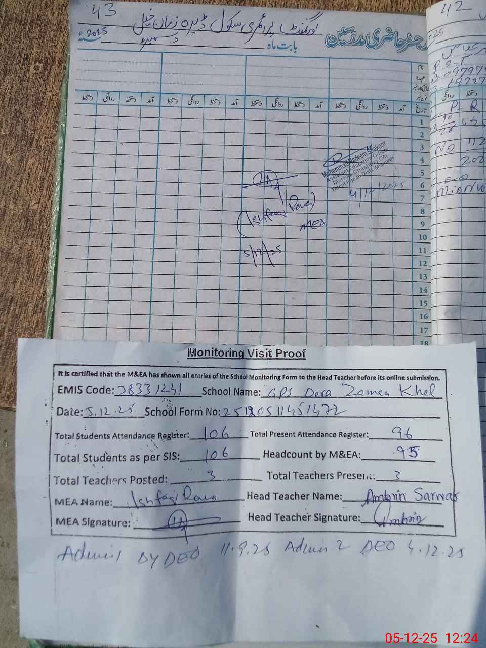 | EMIS Code: 38331241 | Name of School: GPS DERA ZAMAN KHEL PO CHASHMA BERAJ COLONY | |||