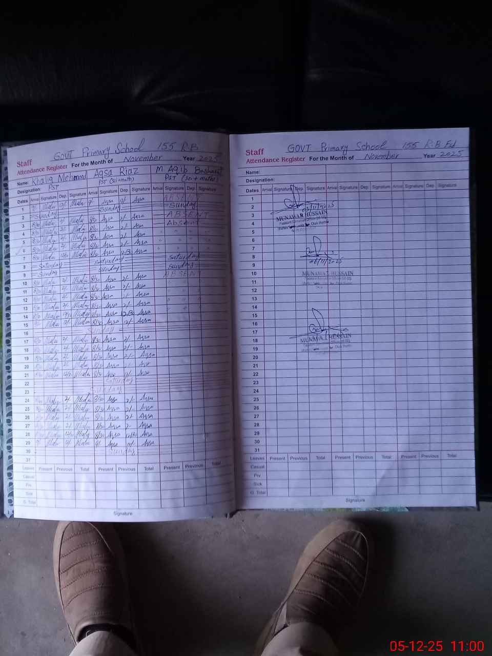 | CNIC | Full Name | Designation | R/C | Absence During Last Calender Month |