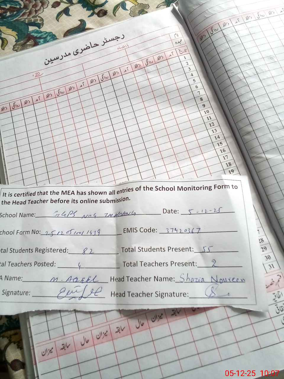 | EMIS Code: 37420367 | Name of School: GGPS TALA GANG NO 4 | |||