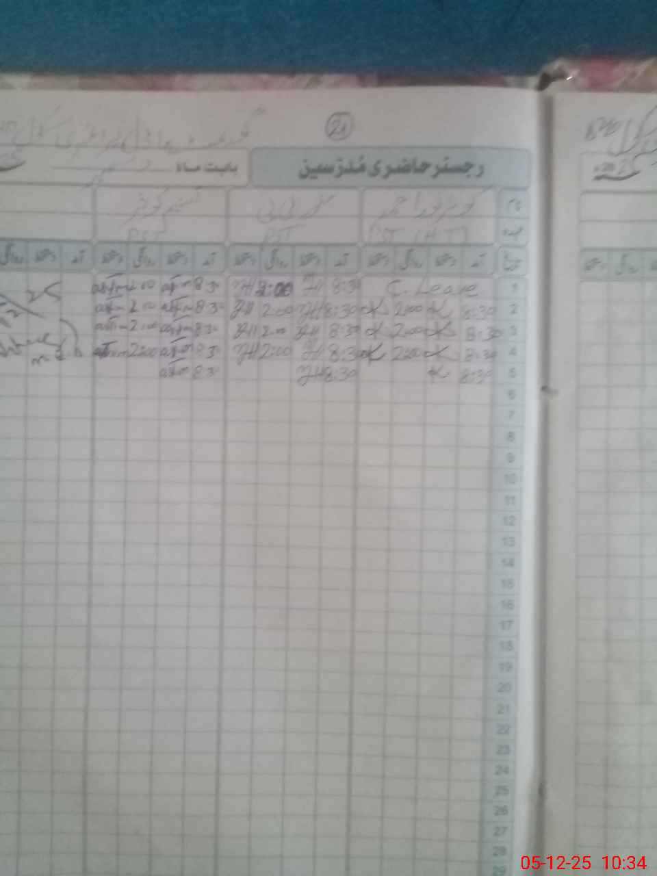 | CNIC | Full Name | Designation | R/C | Absence During Last Calender Month |