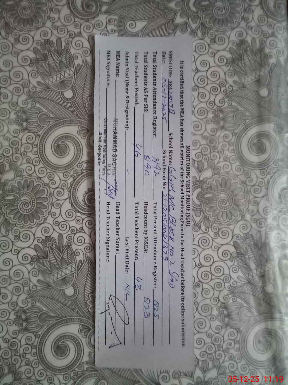 | EMIS Code: 38420078 | Name of School: GGHS MC BLOCK NO. 2 SARGODHA | |||