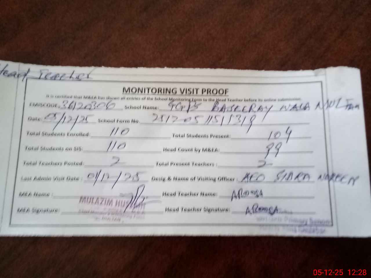 | EMIS Code: 36120306 | Name of School: GGPS BASEERAY WALA SHUJABAD | |||