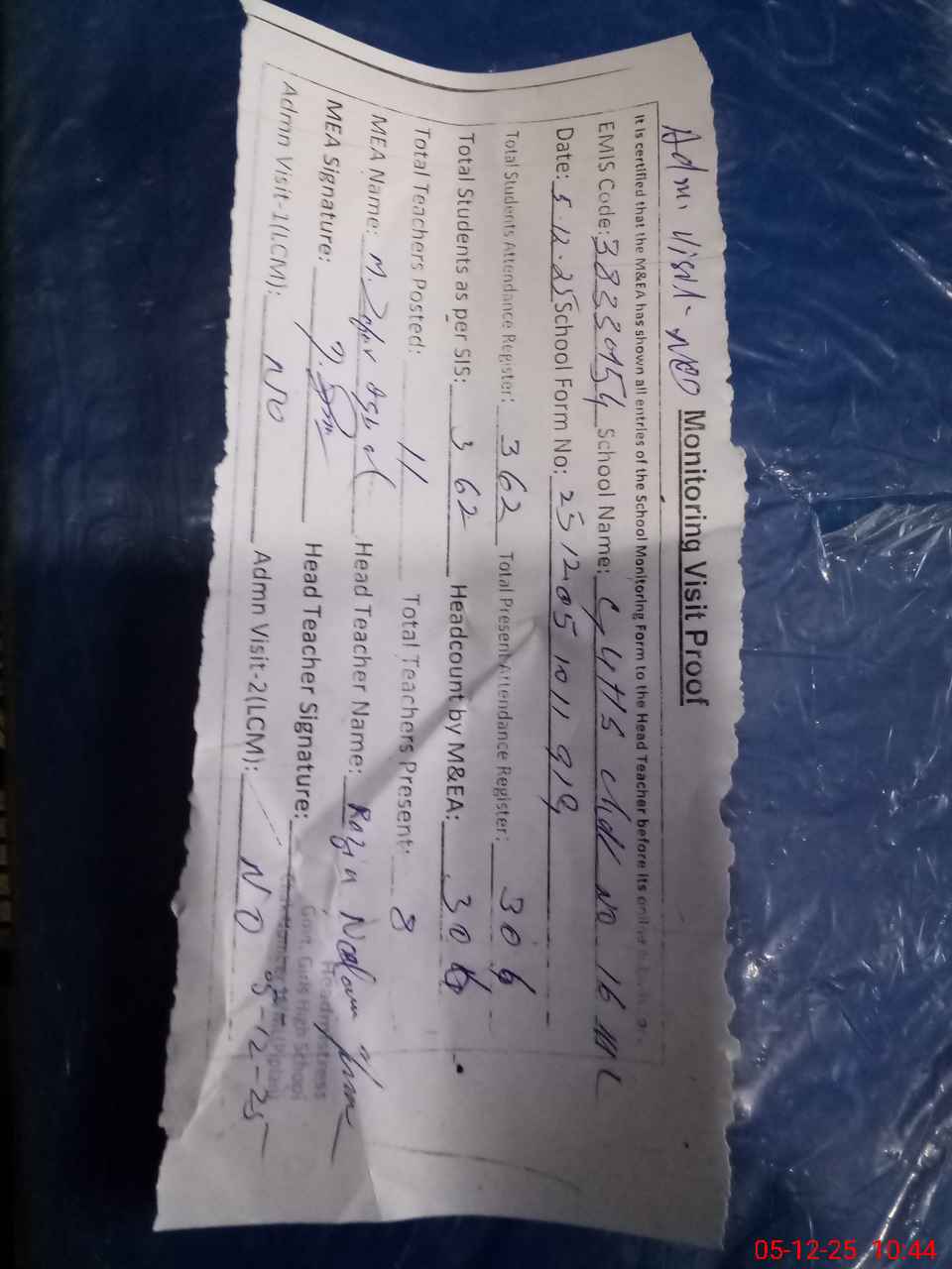 | EMIS Code: 38330154 | Name of School: GGHS CHAK NO. 16 ML | |||