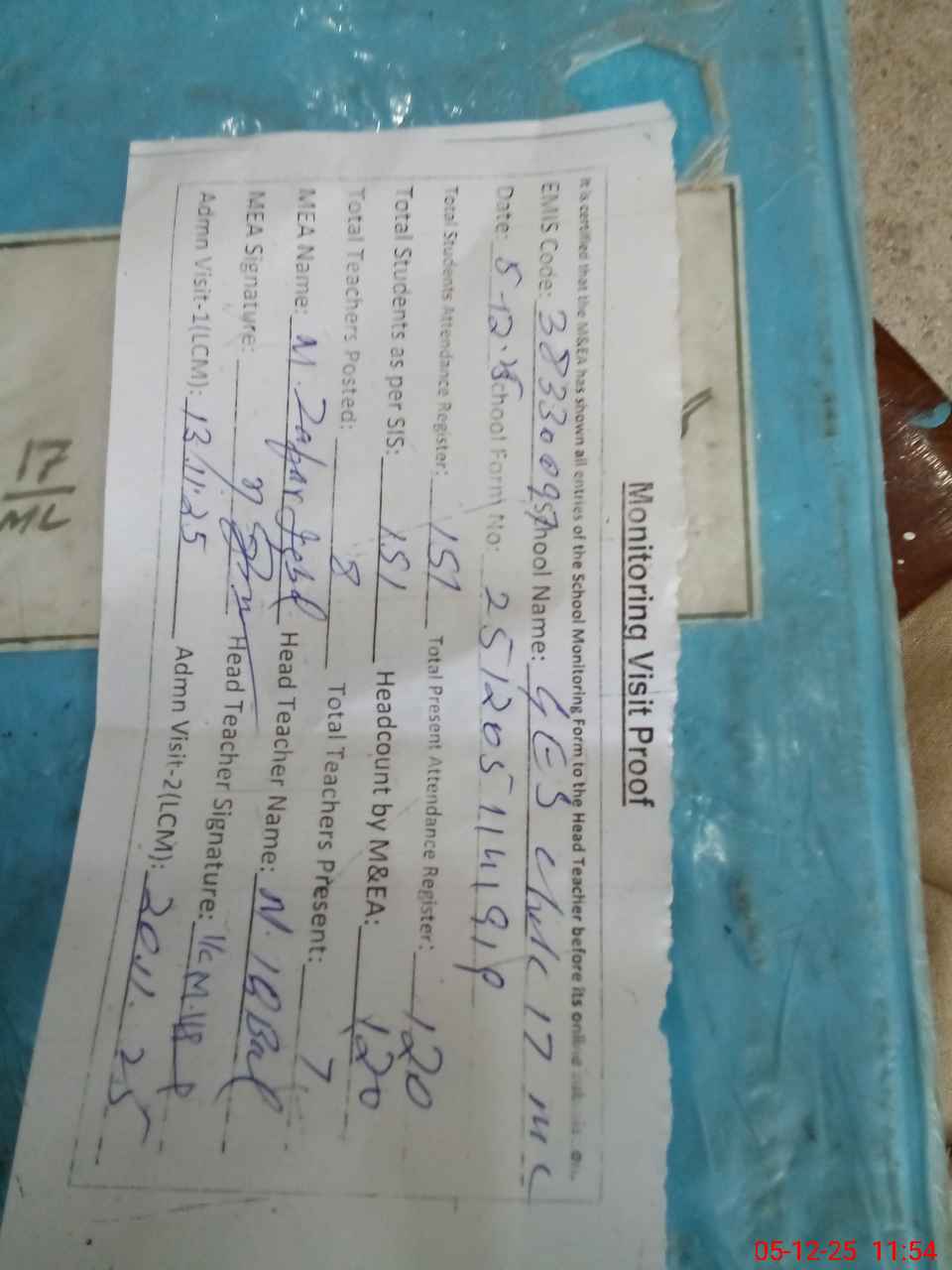| EMIS Code: 38330097 | Name of School: GES CHAK NO 17 ML | |||