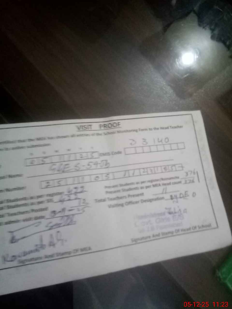 | Attendance Register | Head Teacher | MEA with School | Visit Proof |