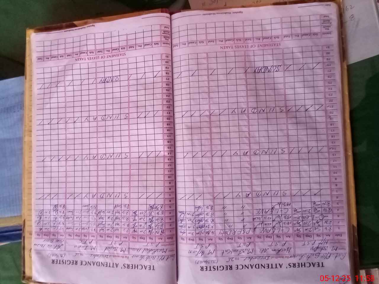 | CNIC | Full Name | Designation | R/C | Absence During Last Calender Month |