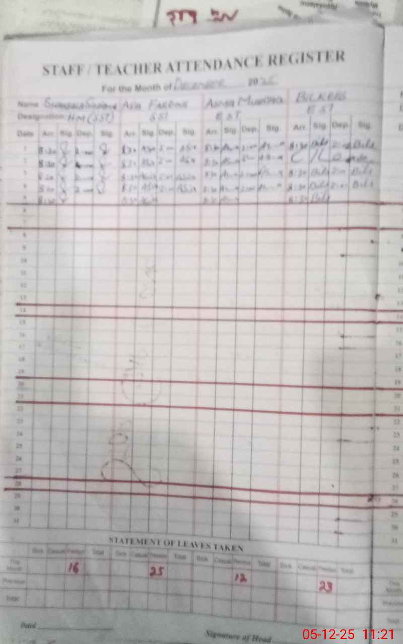 | Name: SH**** SI**** Designation: (School Headmaster's/Headmistress's) Head Mistress Phone/Cell Number: 03**** |