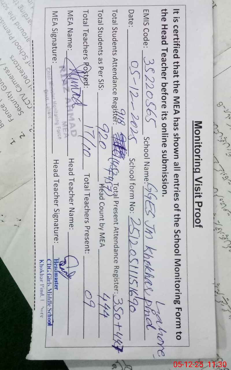 | EMIS Code: 35220565 | Name of School: GGES JR. MODEL KHOKHAR PIND BADAMI BAGH (EX-MCL) | |||