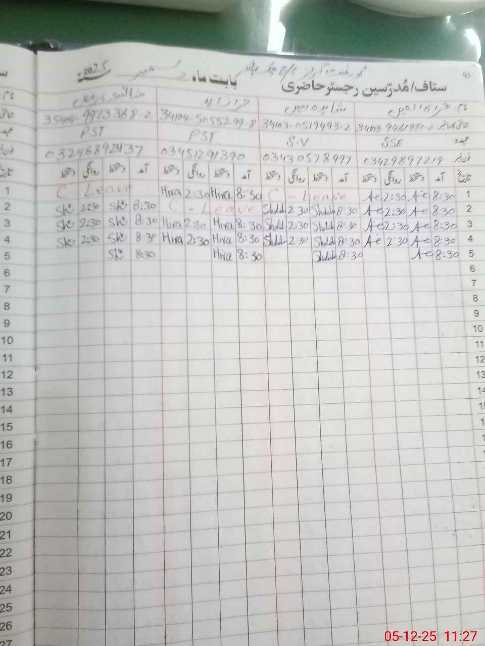 | CNIC | Full Name | Designation | R/C | Absence During Last Calender Month |
