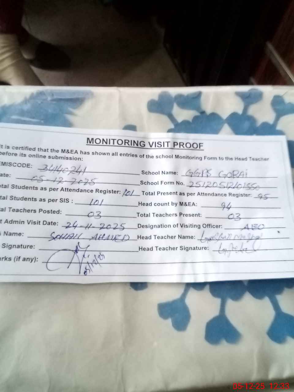 | EMIS Code: 34140241 | Name of School: GGPS GORAI | |||