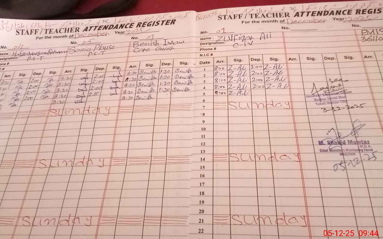 | Attendance Register | Head Teacher | MEA with School | Visit Proof |