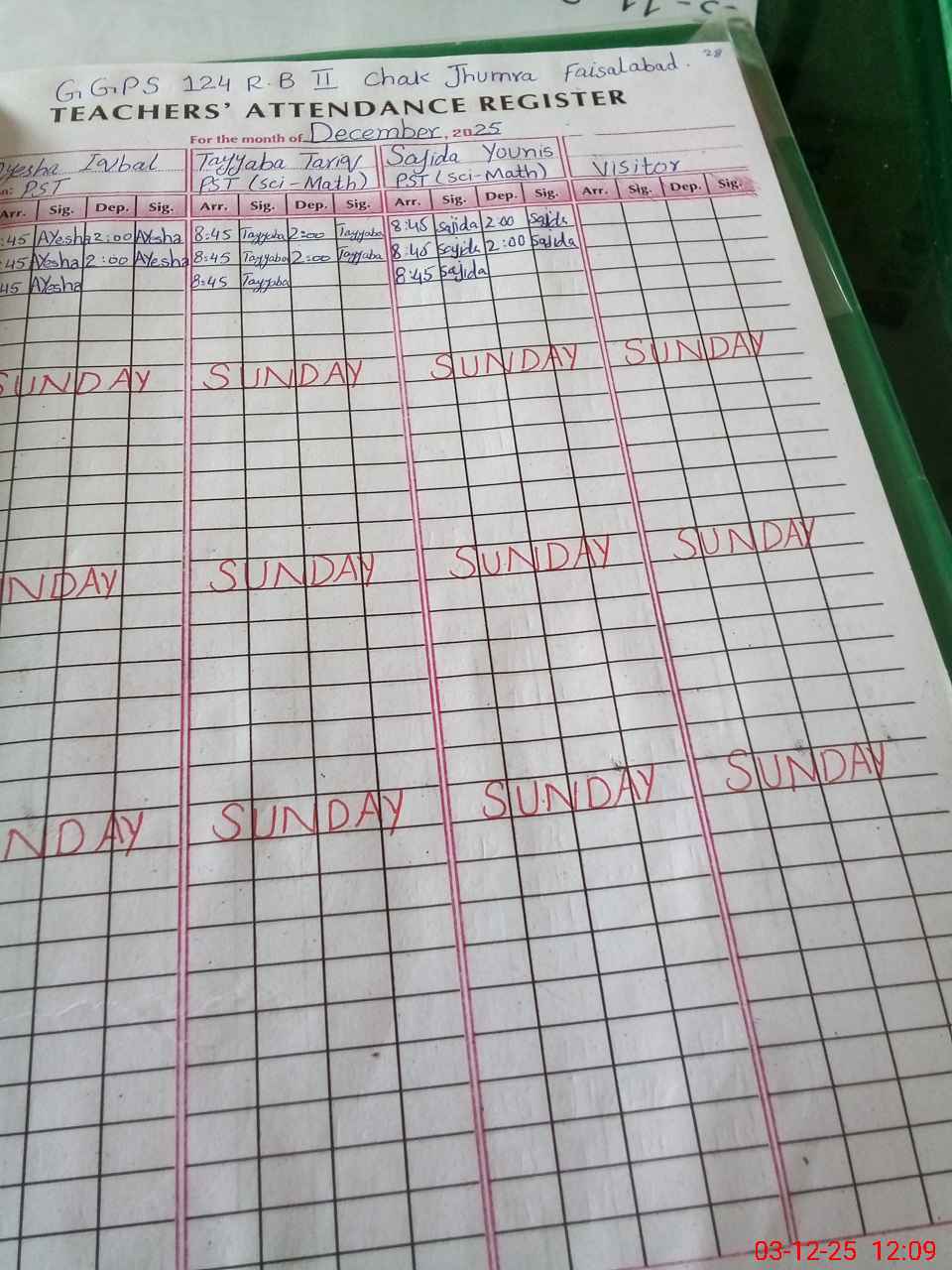 | District: FAISALABAD | Tehsil: CHAK JHUMARA | Markaz: SAHIANWALA - FEMALE | Level: Primary | |