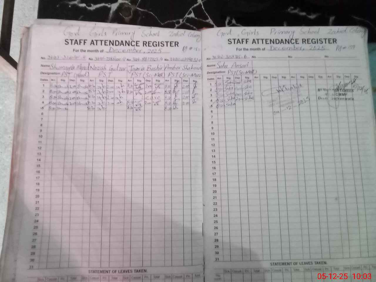 | Name: SH**** MA**** Designation: (School Headmaster's/Headmistress's) PST Phone/Cell Number: 03**** |