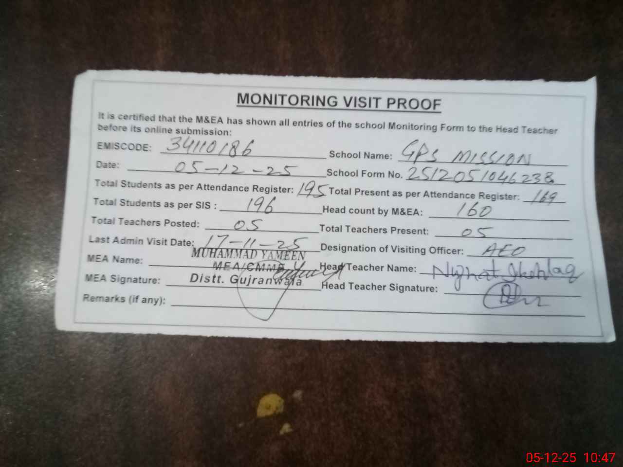 | EMIS Code: 34110186 | Name of School: GPS MISSION | |||