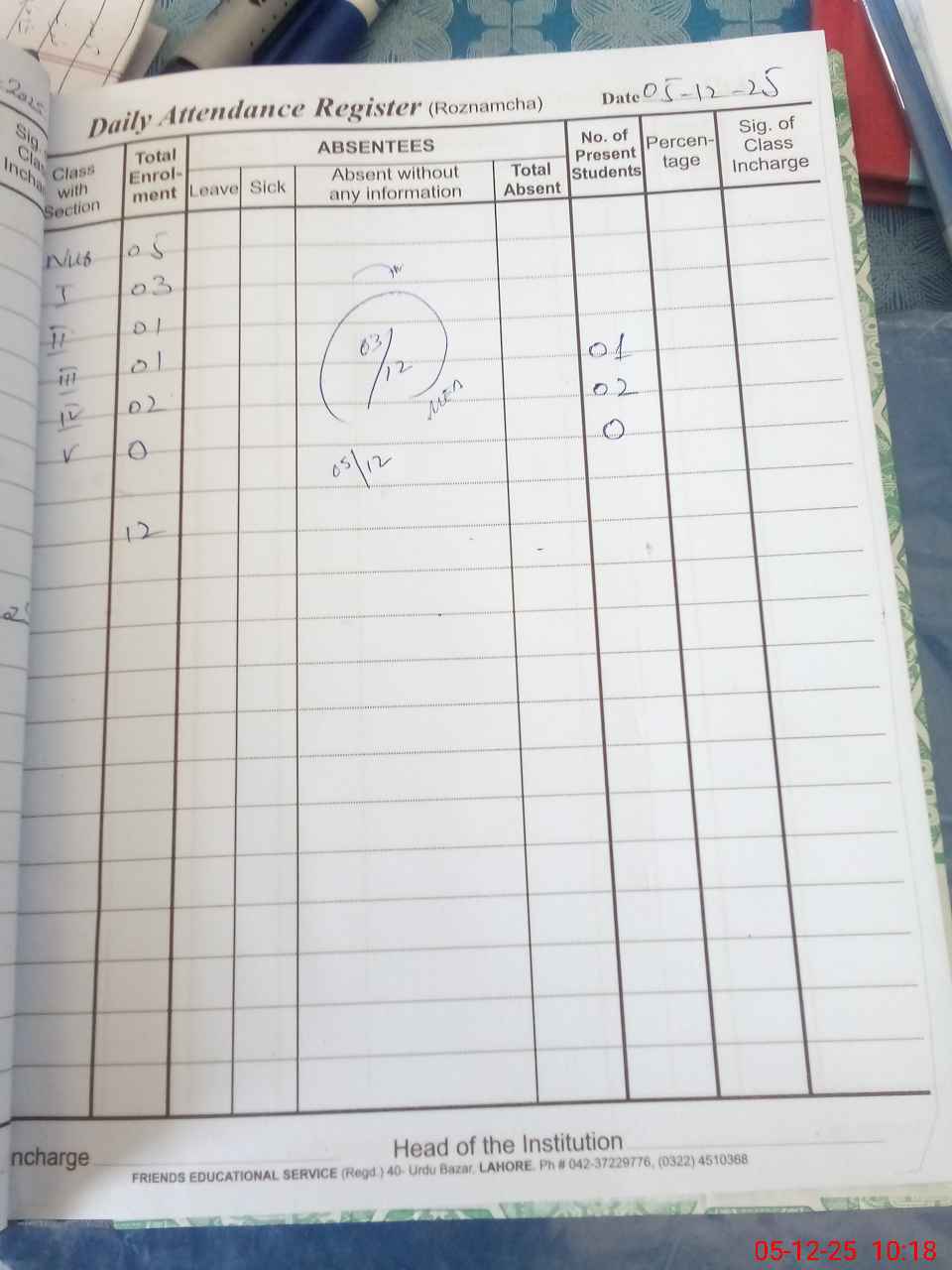 | Attendance Register | Head Teacher | MEA with School | Visit Proof |