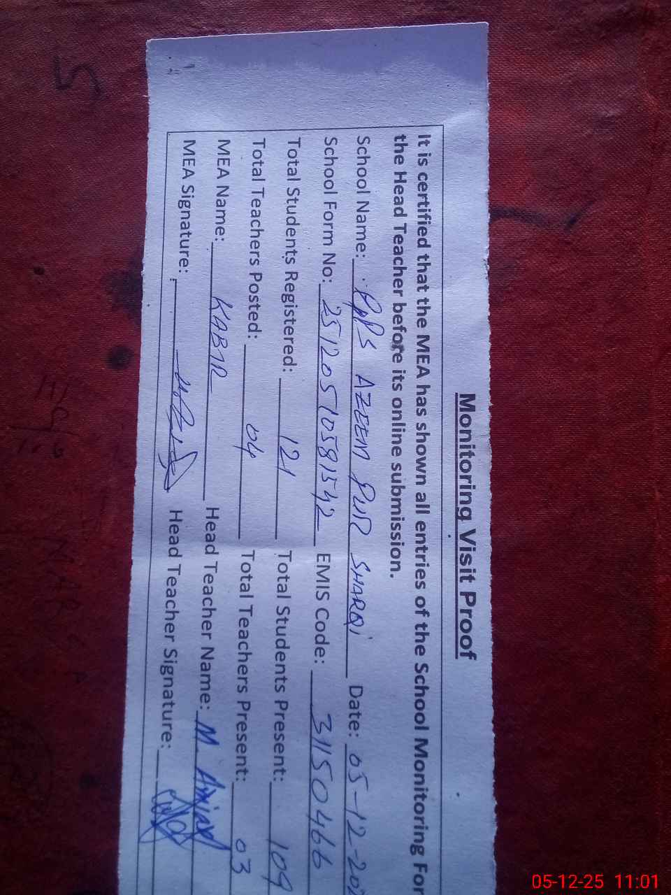 | EMIS Code: 31150466 | Name of School: GPS MC AZAM PURA SHARQI | |||